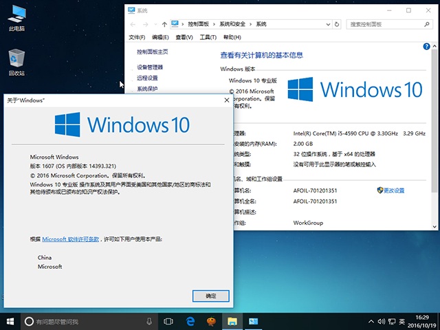 1、源安装盘采用微软官方2016年10月12日最新发布的稳定版Windows10(x32) – DVD (Chinese-Simplified) 专业版操作系统,更新补丁(KB3194798,KB3194343),原版支持在线升级,补丁已经更新为最新。