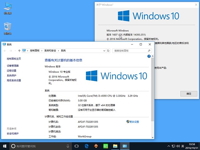 1、源安装盘采用微软官方2016年10月28日最新发布的稳定版Windows10(x32) – DVD (Chinese-Simplified) 专业版操作系统,更新补丁(KB3197954),原版支持在线升级,补丁已经更新为最新。