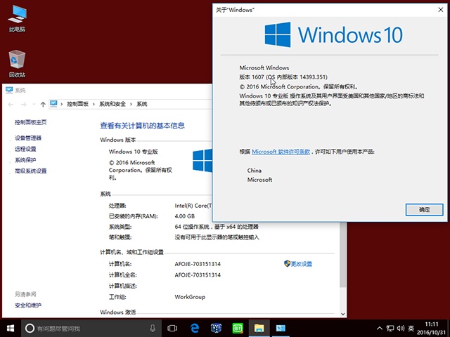1、源安装盘采用微软官方2016年10月28日最新发布的稳定版Windows10(x6432) - DVD (Chinese-Simplified) 专业版操作系统,更新补丁(KB3197954),原版支持在线升级,补丁已经更新为最新。