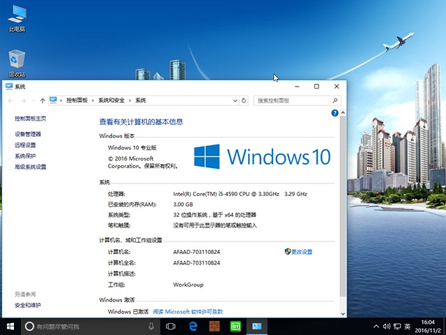 1、源安装盘采用微软官方2016年10月28日最新发布的稳定版Windows10(x32) - DVD (Chinese-Simplified) 专业版操作系统,更新补丁(KB3197954),原版支持在线升级,补丁已经更新为最新。