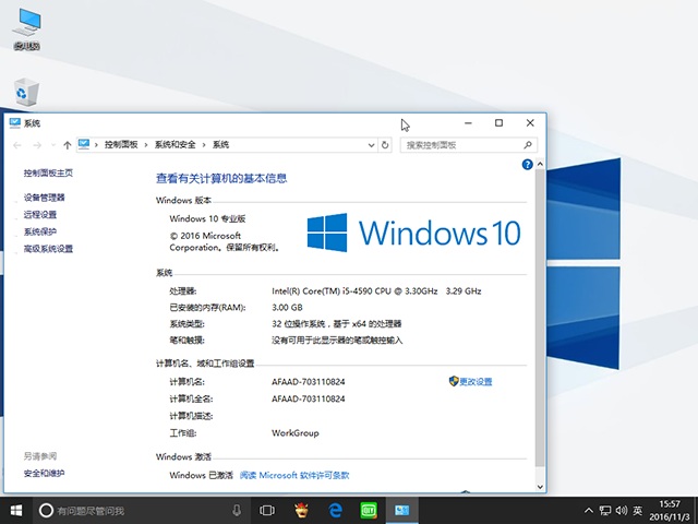 1、源安装盘采用微软官方2016年10月28日最新发布的稳定版Windows10(x32) – DVD (Chinese-Simplified) 专业版操作系统,更新补丁(KB3197954),原版支持在线升级,补丁已经更新为最新。