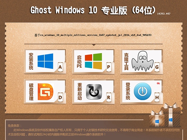1、源安装盘采用微软官方2016年11月09日最新发布的稳定版Windows10(x64) - DVD (Chinese-Simplified) 专业版操作系统,更新补丁(KB3200970),原版支持在线升级,补丁已经更新为最新。