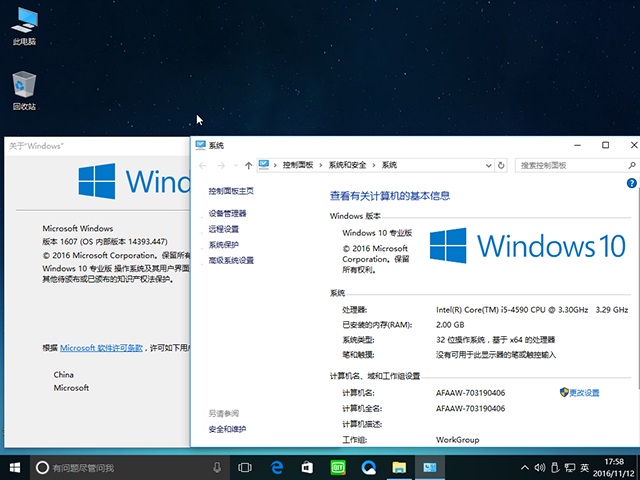 1、源安装盘采用微软官方2016年11月09日最新发布的稳定版Windows10(x32) - DVD (Chinese-Simplified) 专业版操作系统,更新补丁(KB3200970),原版支持在线升级,补丁已经更新为最新。