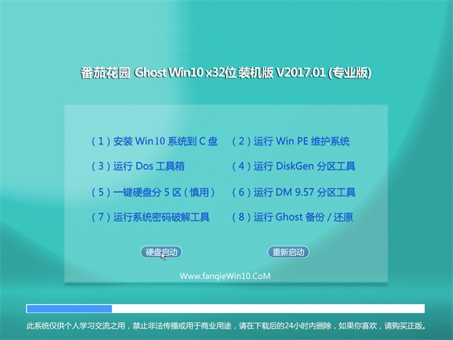 番茄花园Ghost Win10x32位装机版V2017.01版本智能判断并全静默安装,amd双核补丁及驱动优化程序,让cpu发挥更强