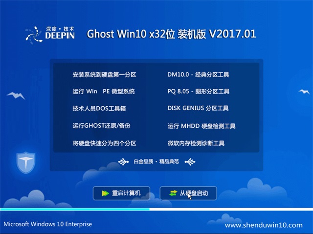 深度技术Ghost Win10x32位装机版V2017.01版本智能判断并全静默安装,amd双核补丁及驱动优化程序,让cpu发挥更强