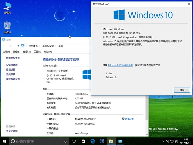 雨林木风Ghost Windows10 X64装机专业版(14393.693)