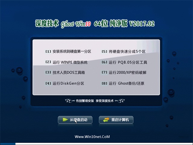 深度技术Ghost Win10x64位纯净版V2017.02版本在稳定的基础上极限发挥系统最好的性能防黑屏.加快菜单显示速度;启用DMA传输模式,深度技术Win10x64位纯净版首次登陆桌面,后台自动判断和执行清理目标机器残留的病毒信息,以杜绝病毒残留。深度技术Win10x64位系统兼营性、稳定性、安全性较均强!完全无人值守自动安装,集成了自2015年流行的各种硬件驱动,首次进入系统即全部硬件已安装完毕,深度技术Win10x64位通过数台不同硬件型号计算机测试安装均无蓝屏现象,硬件完美驱动。