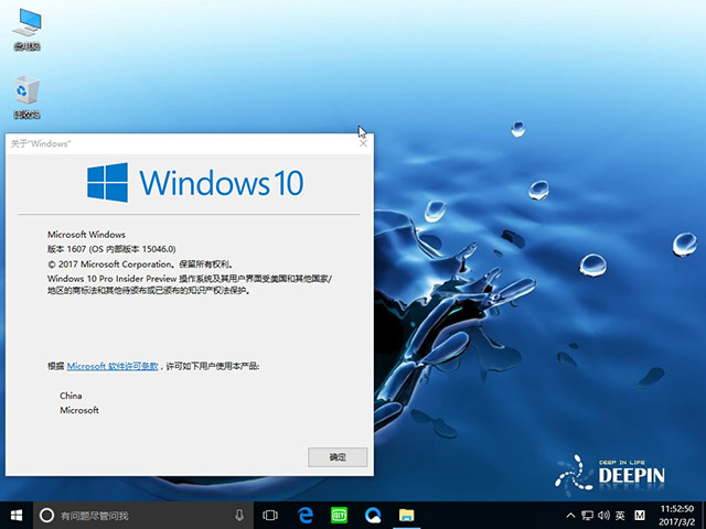深度技术Ghost Windows10 X32装机专业版V2017.03