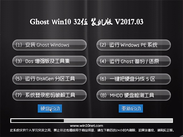 电脑店Win10x32位装机版系统仅用于进行演示基于万能GHOST的快速部署技术,除了系统和光盘中明确标识为原创 作品的软件外,其他的全部文件归属于原版权人所有。我们不承担任何技术和版权问题,没有提供任何技术支持的义务.请勿将本系统用于商业用途!