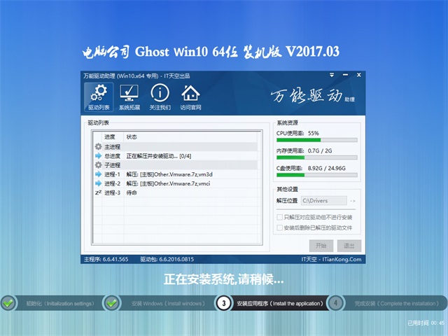 7、集成常见硬件驱动,智能识别+预解压技术,绝大多数硬件可以快速自动安装相应的驱动;