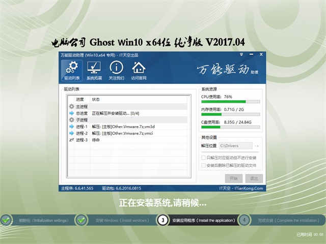 5. 安装过程会运行自主开发的驱动选择工具,此工具可智能判断所有的电脑硬件型号,最大限度地避免了因驱动冲突而蓝屏的现象。