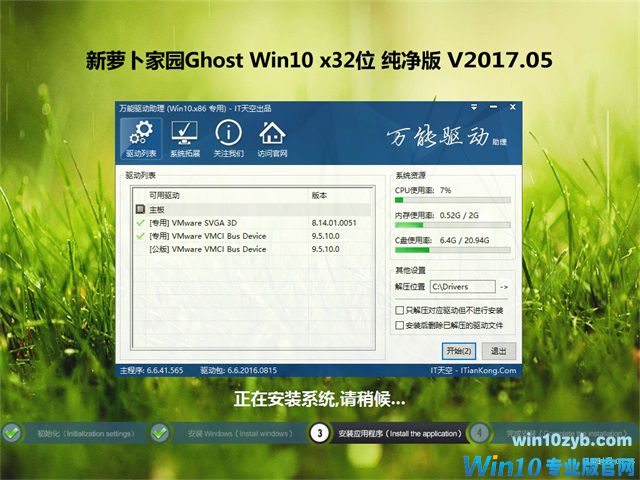 新萝卜家园Win10x32位纯净版系统仅用于进行演示基于万能GHOST的快速部署技术,除了系统和光盘中明确标识为原创 作品的软件外,其他的全部文件归属于原版权人所有。我们不承担任何技术和版权问题,没有提供任何技术支持的义务.请勿将本系统用于商业用途。