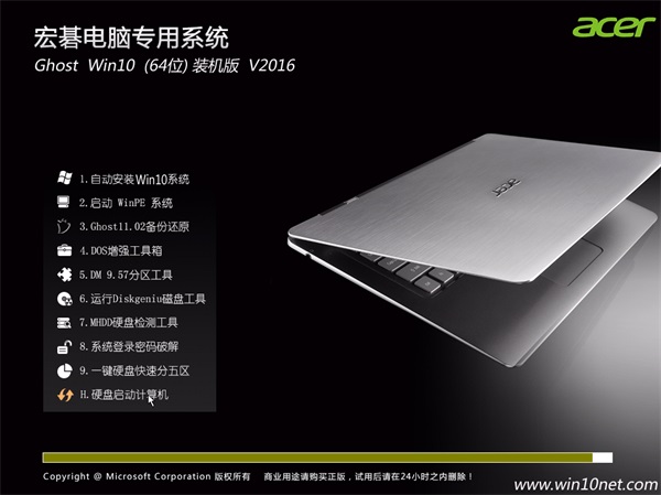 宏碁笔记本 Ghost Win10 64位 装机版 v2016.05