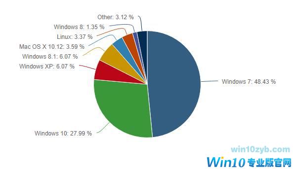 但这并没有对市场份额差异产生根本影响,Windows 10仍然以相当缓慢的速度增长,Windows 7用户没有看创作者更新由足够的吸引力让他们升级。市场研究公司NetMarketShare最新统计数据显示,Windows 7还是桌面操作系统的第一名,市场份额达到48.43%,而Windows 10则为27.99%。