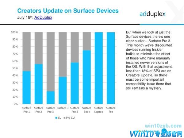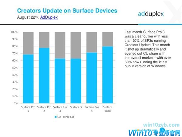 AdDuplex送出的最新统计显示, 截至8月份,Windows 10创作者更新率已经达到了65.6%,虽然比上月的50.1%有着明显的增幅,但依然有34.4%(1/3)的Windows 10用户没有升级。
