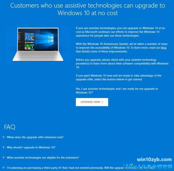 基本上,微软允许使用辅助技术的Windows 7或Windows 8.1客户免费升级到Windows 10,而他们所要做的就是“声称”他们在操作系统中使用辅助功能。没有验证发生,几乎任何人都可以执行升级。
