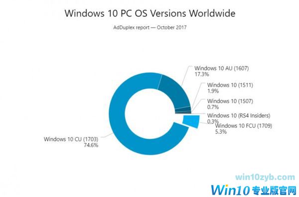 广告公司AdDuplex在今天公布了2017年10月份Windows生态报道,显示Windows 10秋季创作者更新在发布一周之后,系统版本版本达到了5.3%。本次调查基于5000款使用AdDuplex SDK的Windows Store应用,截止10月24日统计收集的数据。