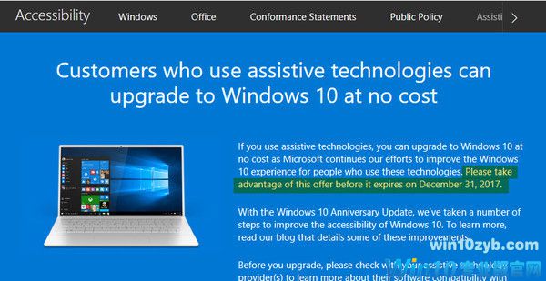 面向一般公众的 Windows 10 免费升级优惠将于 7 月 29 日结束。但是,如果您使用辅助技术,那么即使在面向一般公众的优惠截止日期过后,您仍可获得免费升级优惠,这是因为 Microsoft 会继续为使用辅助技术的客户改进 Windows 10 使用体验。