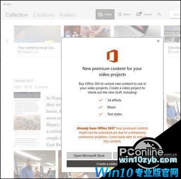 另外在一个接近正式版的Windows 10秋季创意者更新内测版本中,打开Office 365也能看到新的高级内容更新提示。