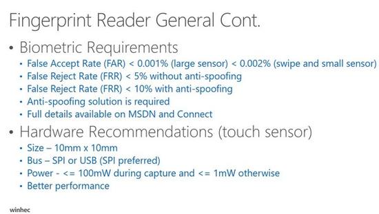 生物识别:虹膜+指纹微软在设备安全防护上采用少见的虹膜识别方案,如Surface Pro 4和Lumia 950/950XL,不过Surface可以接入指纹识别键盘盖,一度令暗光下的950哭瞎。如今Win10 Mobile计划加入对指纹识别的支持,理想情况下误识率(FAR)小于十万分之一,拒识率(FRR)小于二十分之一。