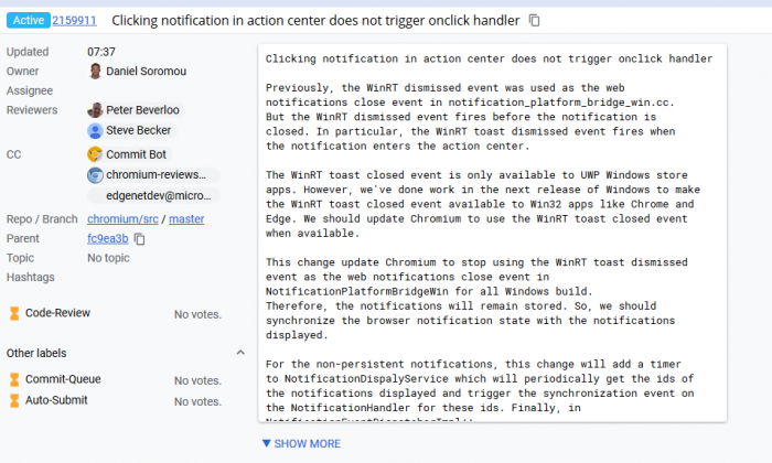 在另一项Chromium提交中,微软还为旧版本的Windows 10系统开发了一个解决方案:
