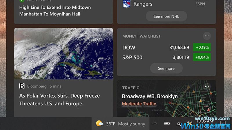 未来,当点击任务栏中的天气图标时,新闻、天气和交通都将会自动显示。