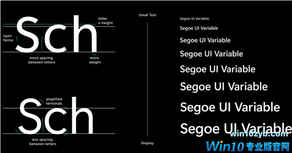 微软正在更新默认的Segoe UI,以包括一个“光轴”,这应该允许字体在各种外形的设备上能够无缝缩放。例如,微软似乎已经改善了字体的小尺寸的可读性,轮廓在不同的显示尺寸上看起来会更好。