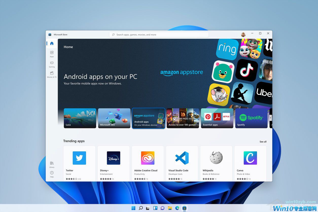 Windows 11将能够使用用于Android的Windows子系统和用于Linux的Windows子系统运行Android应用程序。这些android应用程序将通过microsoft商店提供。,但实际的排放过程将通过亚马逊应用商店。