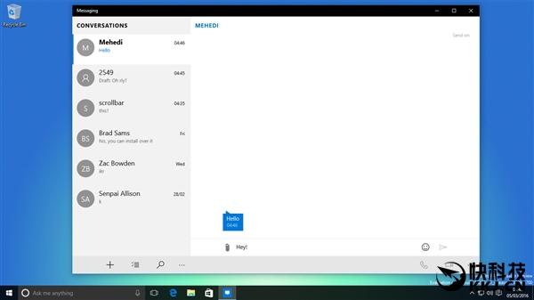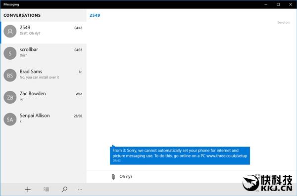PC端现在可以接受手机(Win10)短信、彩信,不过暂时不能直接回复。