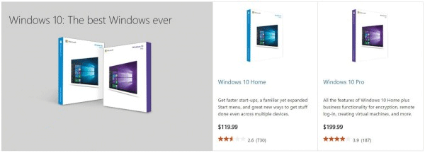 而在美国微软官网,Win10家庭版和专业版均有销售,其中家庭版售价为119.99美元,而专业版的价格则为199.99美元。这一价格和之前的Win8.1相同。