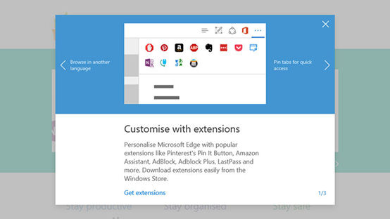 微软的Edge浏览器依然没能流行开来,但它也在不断进行自我完善。周年纪念版为这款浏览器带来了对于扩展程序的支持,你可以在相对应的子菜单当中对扩展程序进行管理,或是在Windows应用商店发现新的扩展程序进行尝试。