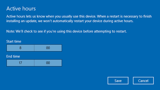 你可以在系统中设置自己的“活跃”时间,从而避免系统在这段时间内进行升级或重启。在设置>更新和安全>Windows更新>更改活跃时间当中,你就可以对其进行设置。