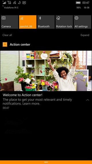 当然这则广告既不是关于微软自家软件套装也不是旗下的硬件设备,而是针对Win10 Mobile操作系统中的操作中心。有网友上传了一张截图,称在升级14905之后,手机就收到了这条推送。