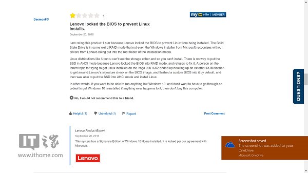 对于联想的这一回应,用户似乎并不买账,因为他们目前根本无法从默认的RAID模式切换到AHCI模式,但是现在几乎所有主板/ BIOS系统都支持AHCI模式。