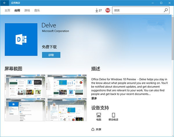 Office Delve是一款用于办公和学习的“工作圈”应用,你可以在该应用中与相同组织的同事或同学联系,接收文件更新、修改和建议通知等内容,拥有Office 365账户的用户可下载使用。