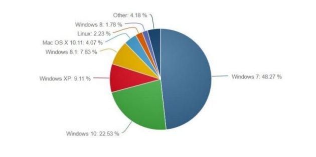 一份来自Net Applications 的分析报告显示,Window 7依然是目前市场上占有率最高的操作系统,而微软公司不顾公司形象疯狂推广的Win 10系统只能排到第二。Windows 10在一年免费升级活动结束之后,不仅市场占有率没有上升,甚至还出现了下降的趋势,从之前的22.9%下降到22.53%,而经典的Windows 7市场占有率反而从47.25%上升到48.27%。也就是说,消费者们不但没有在Win 10上表现出极大兴趣,甚至有些还将已升级的Win 10系统退回到了Win 7,这对于微软公司来说无疑是一个沉痛的打击。
