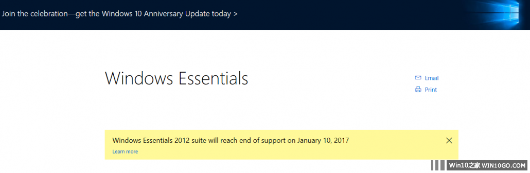 从下面的图中我们可以看到,Windows Essentials 2012套件将会在2017年1月10日结束支持。但是已经下载并安装这些应用的用户仍然可以在该时间点之后使用这些应用。