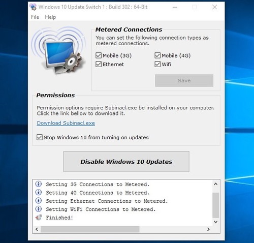 原来,Windows 10 Update Switch采取的是将你的网络伪装成流量计费型,在这种情况下,Windows 10不会下载和安装任何更新。