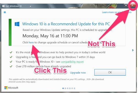 不过他也承认,微软的一种做法有些越线。在免费升级截止的几个月前,Windows 7和Windows 8用户收到了令人迷惑的通知。如果点击角上的红色X按钮,升级并不会取消,而是会通过计划任务在后台进行。