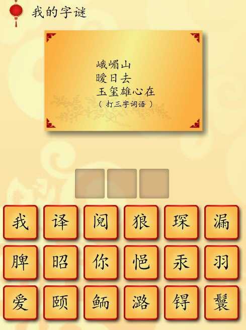 答案当然是“我爱你”啦!它用候选字的方式,使得猜谜的难度大大降低,老少皆宜。