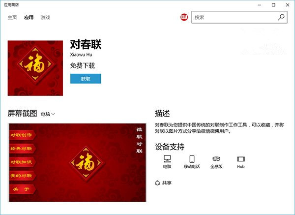 2月10日消息 在WP8.1时代,曾有两个节日应用《微软对联》和《微软字谜》受到用户欢迎。到了Win10时代,这两个应用早已下架。不过应用编写者在把应用打包为UWP之后,得以使之重新上架Windows10商店,并且适用于电脑版和手机版。