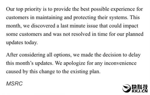虽然该官方人士拒绝透露更多信息,但ZDNet从消息人士那里探听到,微软工程师团队暂时无法解决Patch Build系统的一个严重问题,导致推送延期。