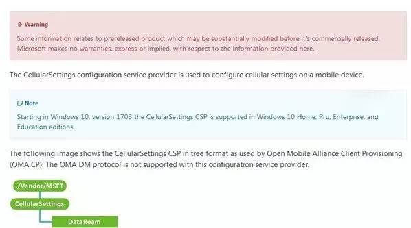 微软称在Windows10 1703创造者更新正式版中,CellularSetting CSP将支持家庭版、专业版、企业版和教育版。手机网络的开放将给开发者更多可能,也让Win10设备大统一得到进一步体现。IT之家曾报道过,西班牙科技媒体曾传言Win10 Mobile RS3是手机版系统的最后一次重大更新,今后微软可能会进一步统一系统,让电脑和手机使用相同的系统,充分发挥Win10生产力特性。而今后在电脑版中加入对手机网络的支持,可能是这一行动的早期体现。