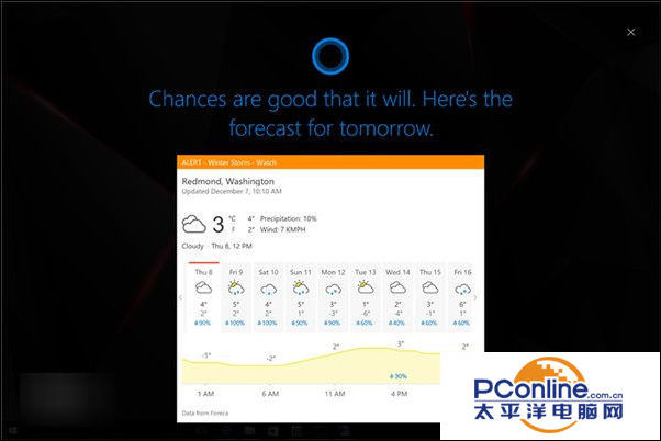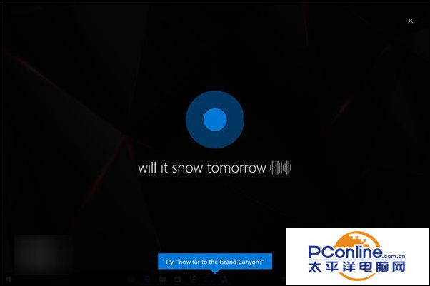 空闲全屏状态:当在Win10锁屏和空闲状态语音唤醒小娜时,微软改进了Cortana的外观界面,当在这种状态下,询问Cortana问题时将会呈现华丽优雅的全屏状态,“你好小娜”后静等10秒钟,然后看看会发生什么。