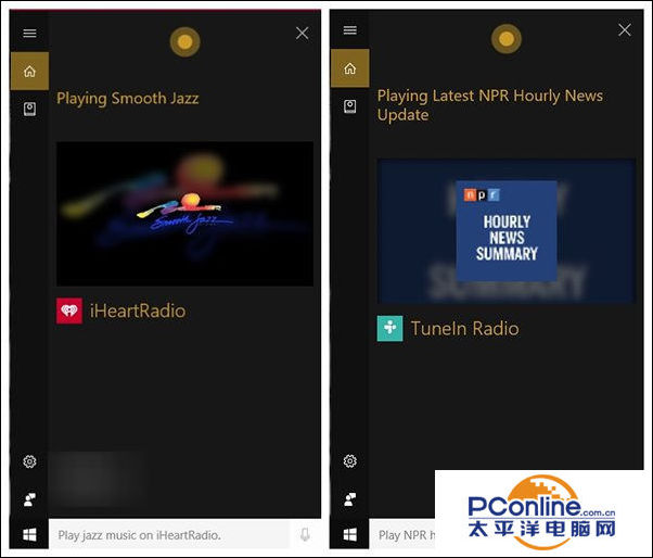 Cortana爱音乐:现在你可以使用Cortana进行音乐播放控制(暂限美国-英语),从该版本开始将开放针对《iHeartRadio》和《TuneIn Radio》自然语音命令控制,包括在锁屏状态下,语音命令举例如下: