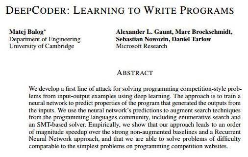 微软和剑桥大学的研究员近日发布了一篇论文,文中阐述了其科研成果——一个会编程的机器学习系统。该系统叫DeepCoder,能够解决编程比赛所涉及到的基础编程题目,为不会编程的人提供了制作简易程序的可能。