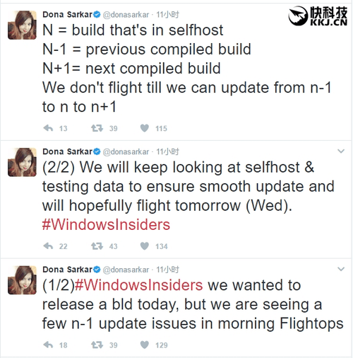 据Insider负责人Dona Sarkar(唐娜姐)推特的消息,他们原本计划在美国周二(北京今晨)开推新Build,但未能如愿。