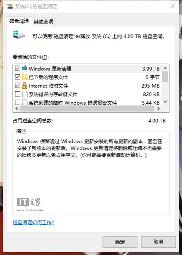 3月16日消息 去年十月份,不少用户发现在使用Win10自带的磁盘清理工具来清理磁盘时,诧异地发现其中的“Windows更新清理”项竟达到3.99TB大小,而该用户的硬盘并没有这么大。当时还有用户调侃称,难道Windows10更新为用户的C盘免费扩容了?