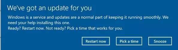 该报导出,微软将提供Windows 10用户选择的权力,包含“立刻重新启动”来完成更新、“选定时间”在未来特定时段更新、或是选择“静音”来略过系统更新通知。