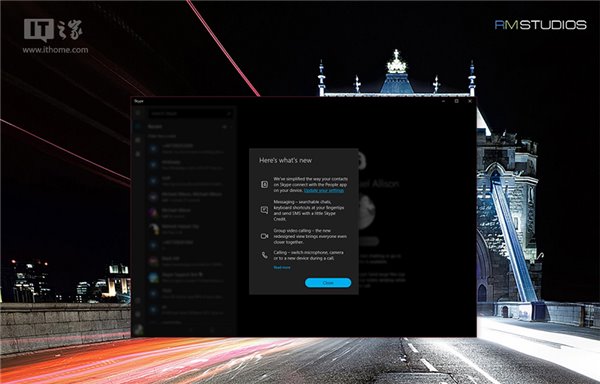 Skype沟通无限。使用即时消息、语音或视频通话彼此问候-全部免费,而且不受使用设备的限制。Skype可以在手机、平板电脑、电脑和Mac上使用。目前Win10 UWP版Skype还是预览版,不过快速通道用户将很快获得正式版更新。